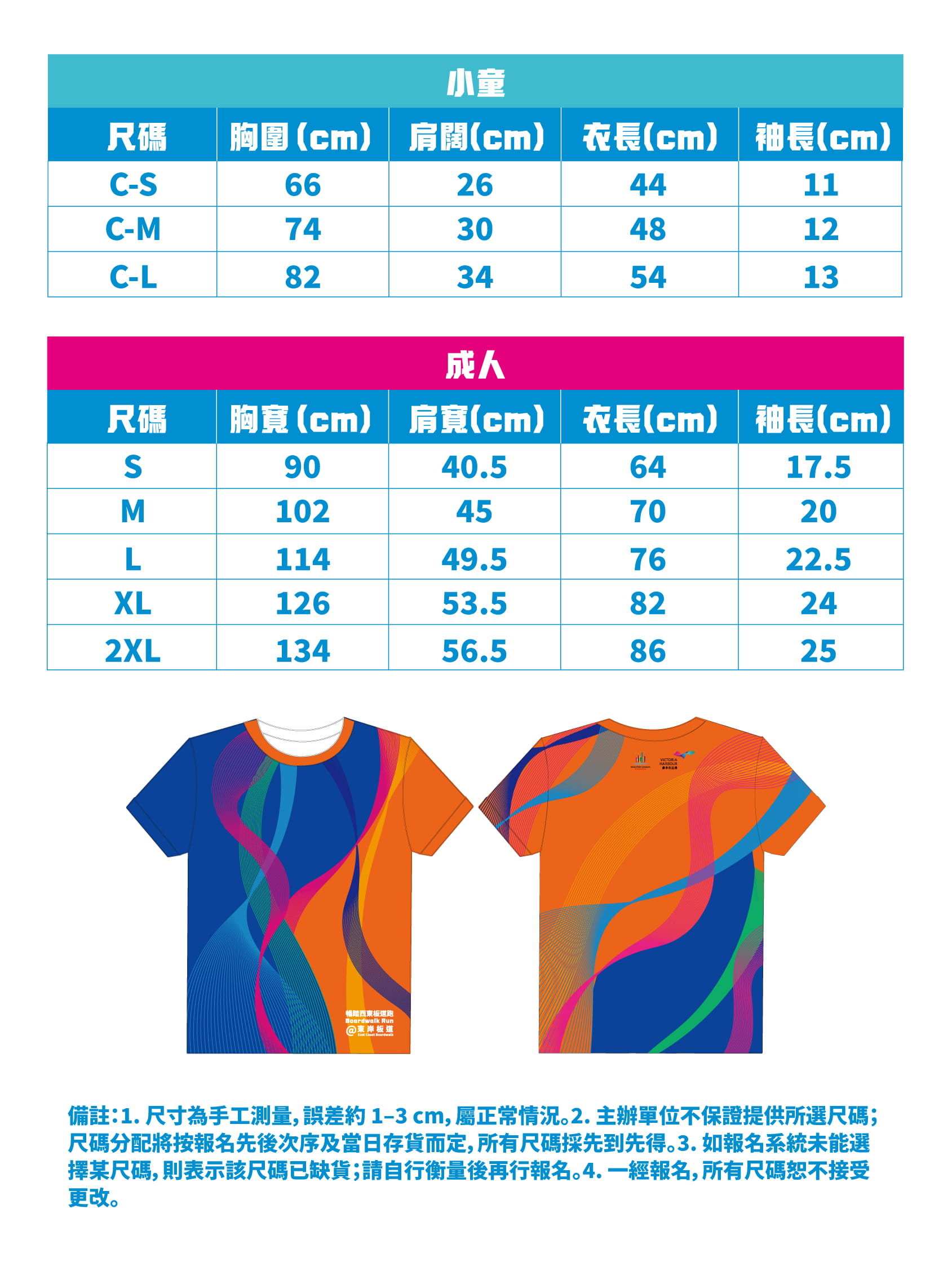 跑手T恤尺码表